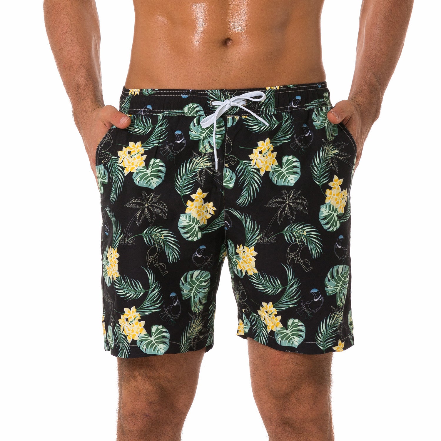 Multi-pocket Floral-lined Beach Shorts Outdoor Shorts